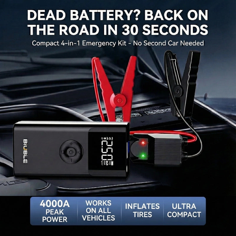 The complete 4-in-1 emergency kit with 4000A peak power, universal tire inflation, phone charging, and LED light. Everything your family needs for roadside emergencies.
