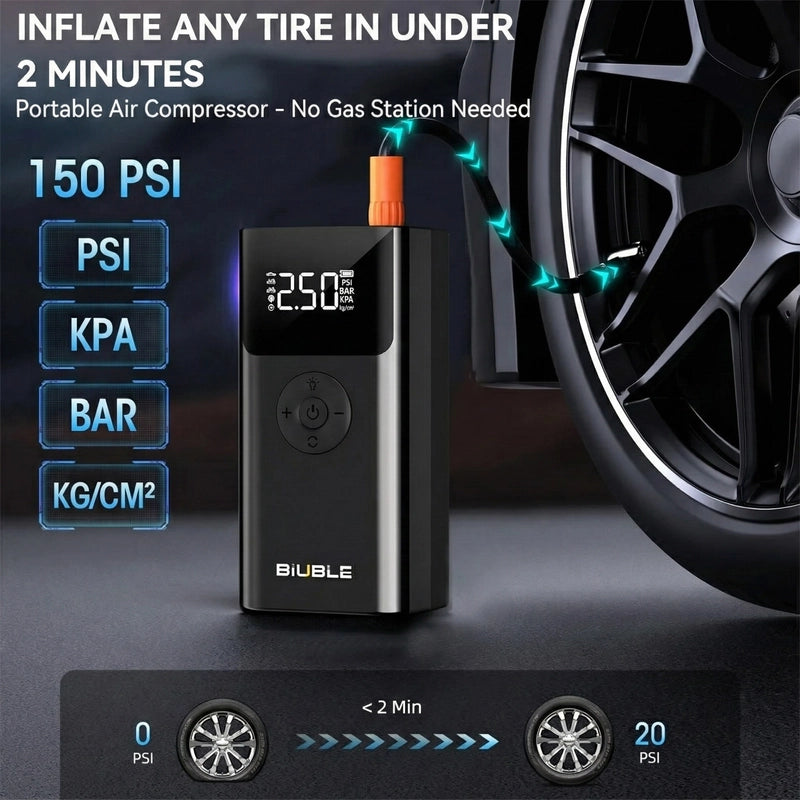 Inflates tires in under 2 minutes